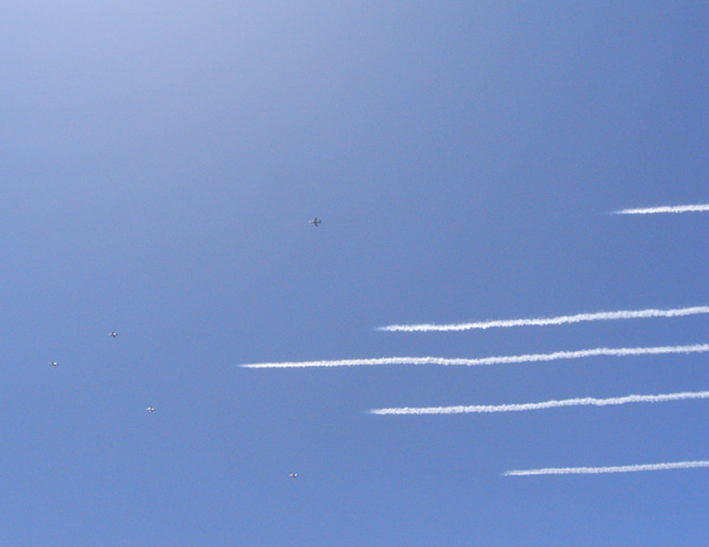 ブルーインパルス!轟音と共に町の中を飛び去りました。一瞬しか見えなかったけどかっこいい!!